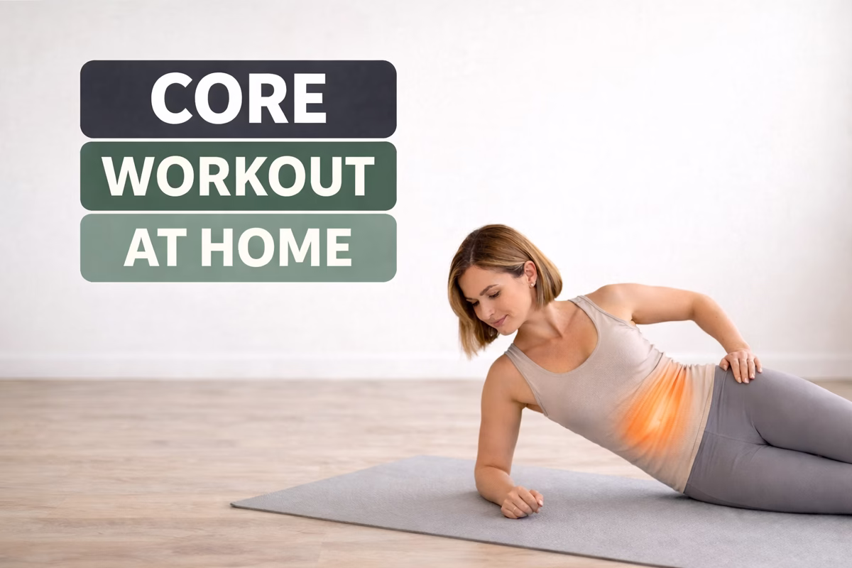 This core workout at home for women is designed to be simple, realistic, and effective. No equipment. No jumping. Just controlled movement and proper form.
